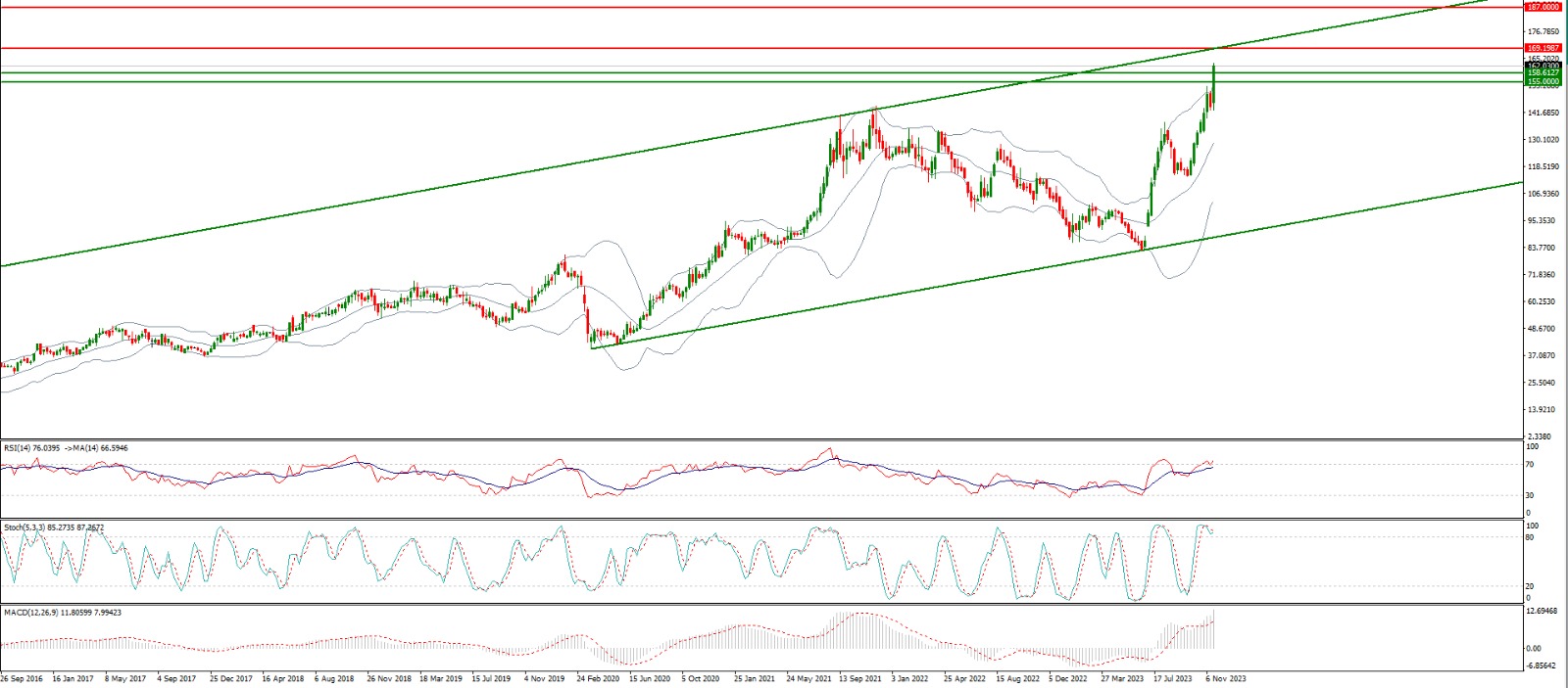Buy above 154 with strict stop loss of 149 and profit target