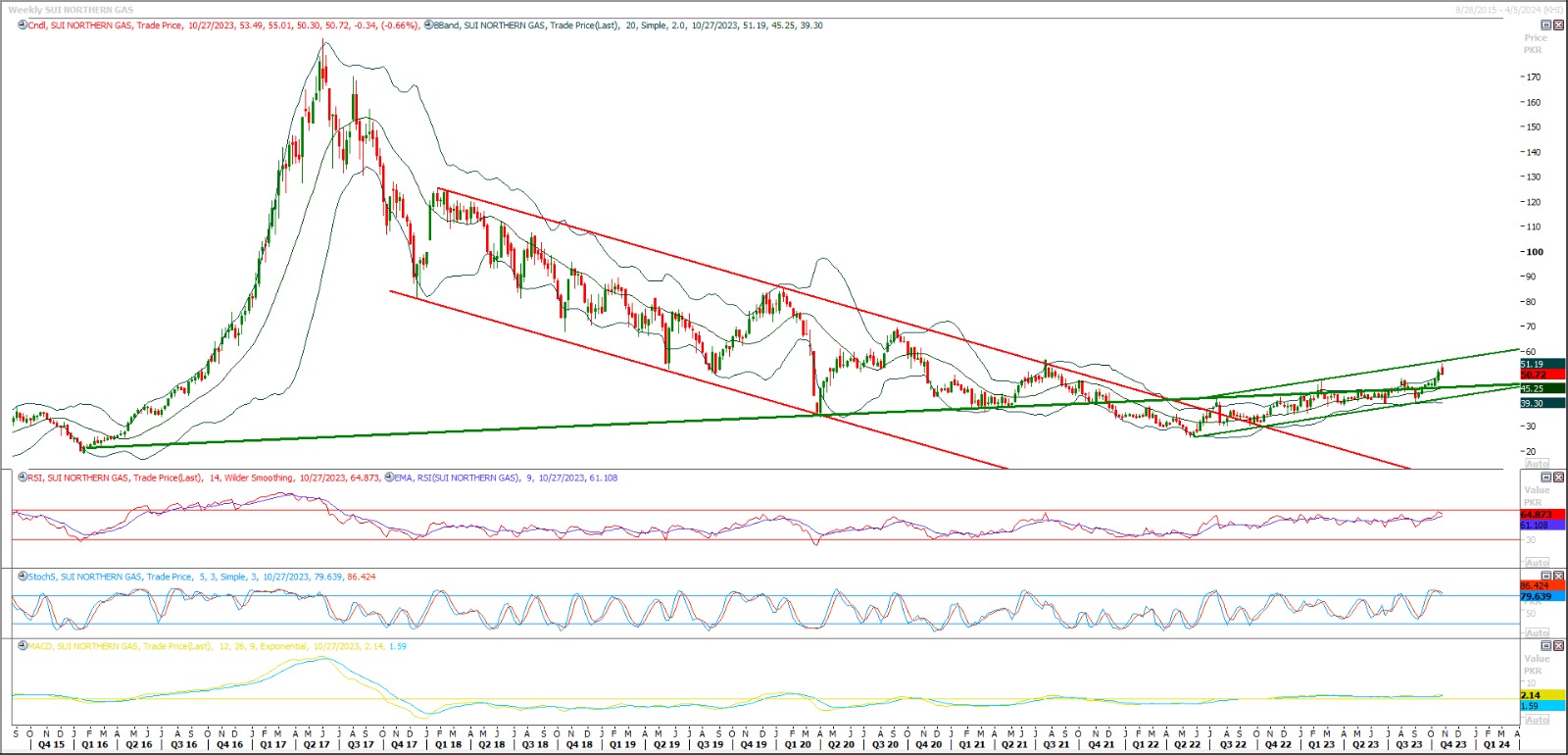 Start buying from 56 and average it out till 51 with strict stop loss of 38