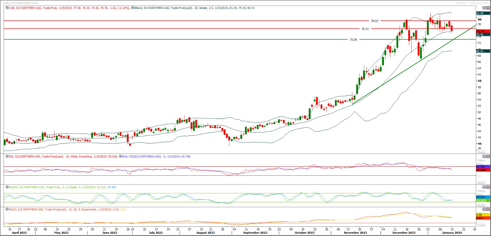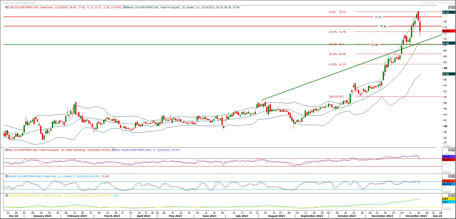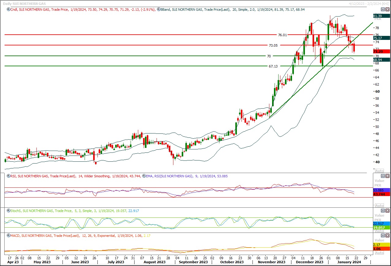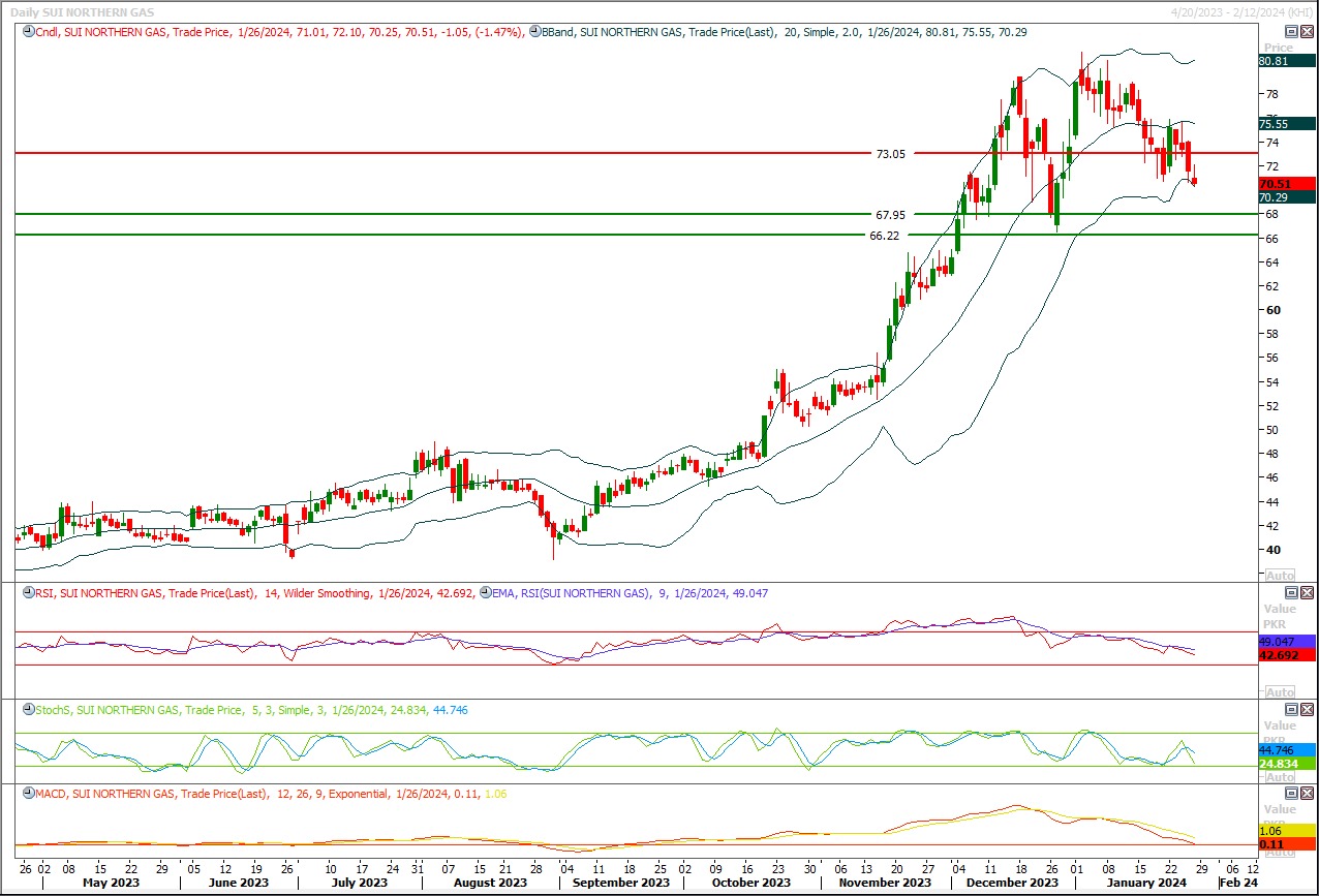 Short sell SNGP below 73 with strict stop loss