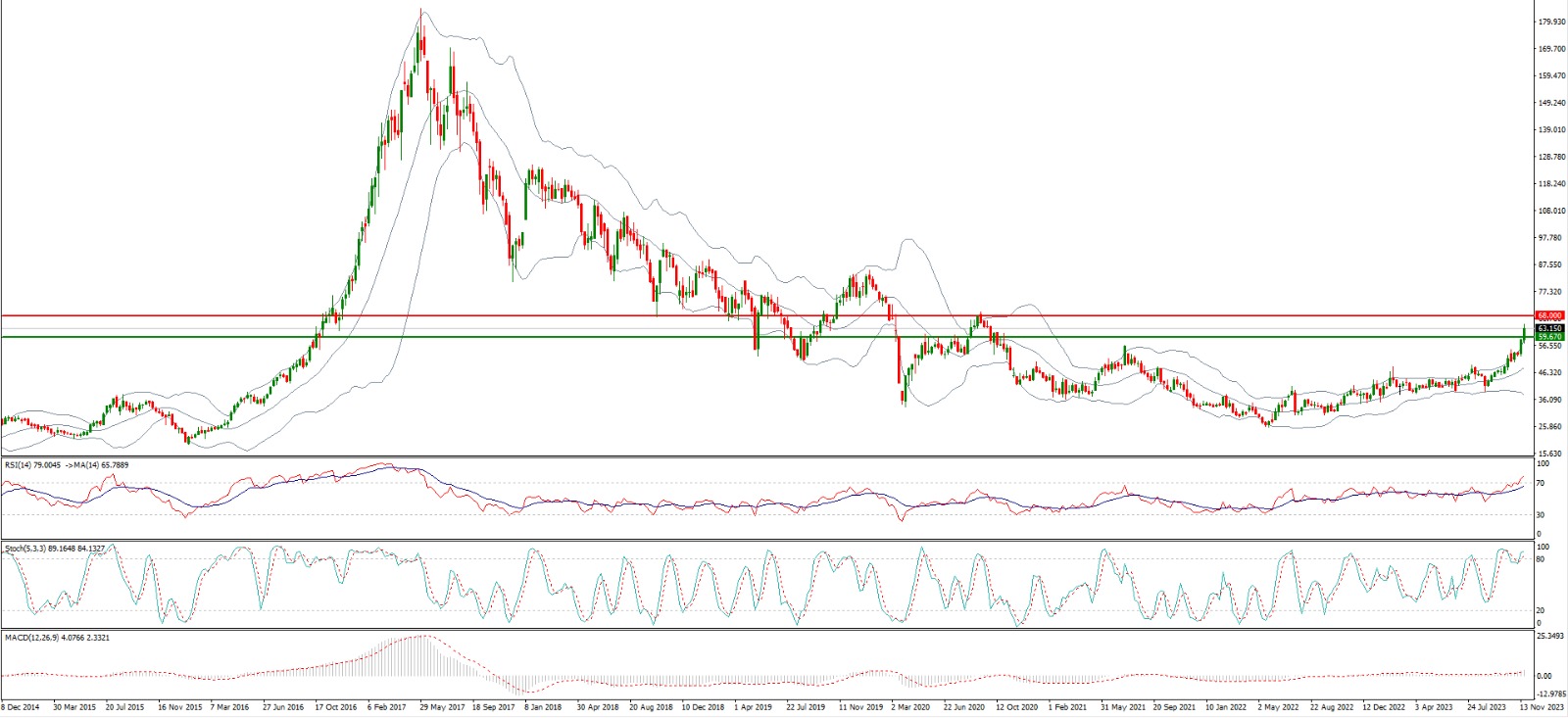 Buy above 67.50 with strict stop loss of 65 and profit target at
