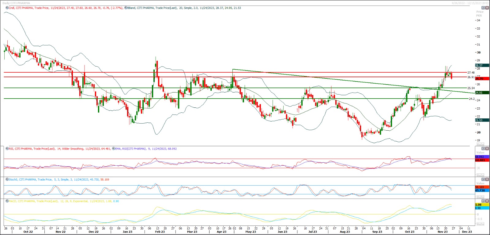 CPHL short term analysis 27th Nov. 2023 Buy above 25.50 with strict stop loss of 24.20 2023-11-27 By, Admin 1